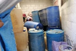 Así mismo se encontraron tambores con líquido con características parecidas al hidrocarburo, mismos que se mantienen encontraron dentro de las viviendas .