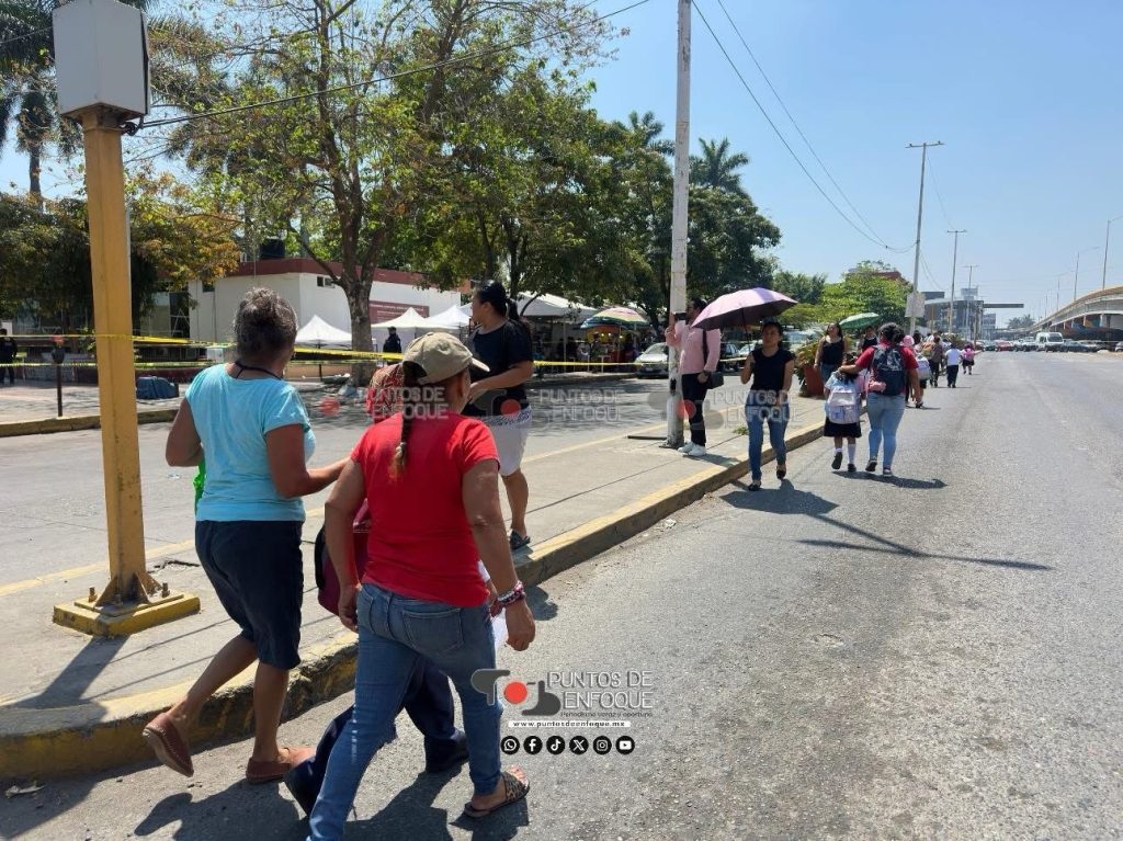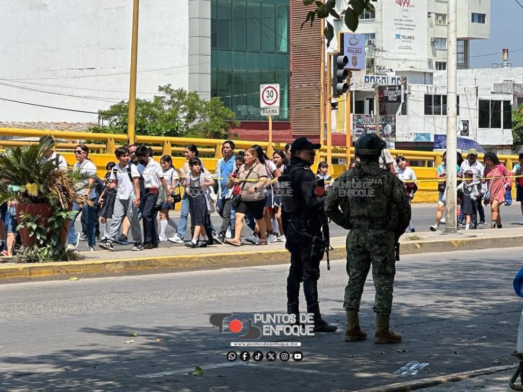Al lugar arribaron elementos de Marina, Policía Municipal y Estatal, que acordonaron elementos área, cerrando la mitad del boulevard Ruiz Cortines y parte del parque, dejando acordonado algunos puestos que se encontraban en el lugar, mientras la tensión de algún detonante.