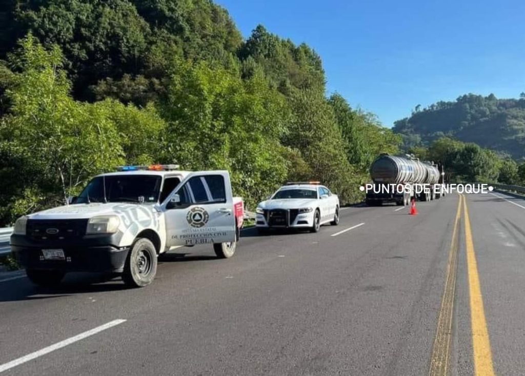 Tras la volcadura de un autotanque con turbosina en la autopista Mexico-Tuxpan, a la altura del municipio de Huauchinango, se informa que se continúan realizando maniobras para el traspaso del producto a otros contenedores; al momento no se reporta riesgo de fuga, la vialidad continúa cerrada, así lo fui a conocer Protección Civil Municipal.