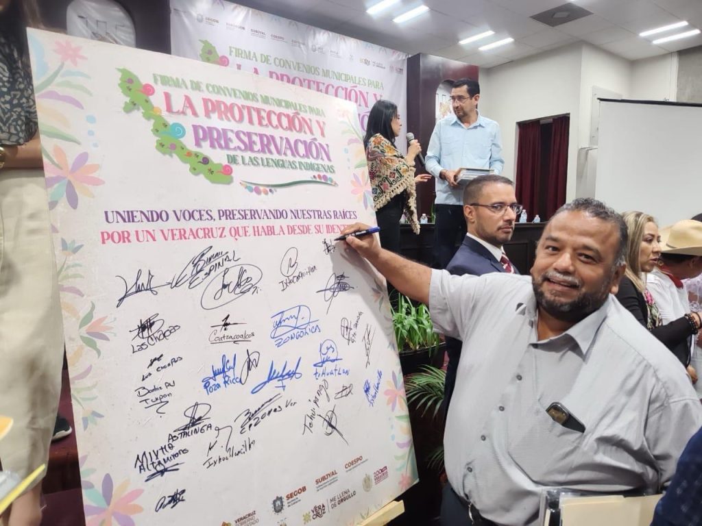 La Academia Veracruzana de las Lenguas Indígenas en coordinación con la Secretaría de Gobierno a través de la Subsecretaría Jurídica y de Asuntos Legislativos de Veracruz y el apoyo del Congreso Estatal, celebraron la firma de Convenios Municipales en “Materia de Derecho, lengua y Cultura Indígena”, para proteger y preservar las lenguas indígenas en municipios con ese perfil.