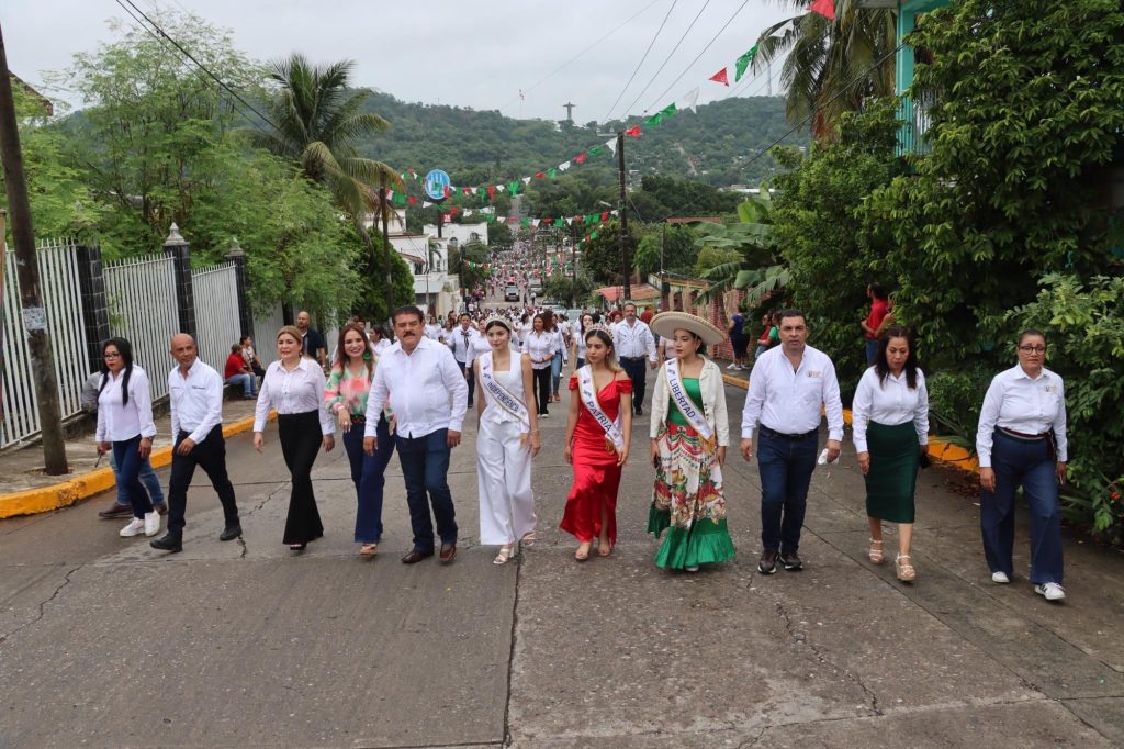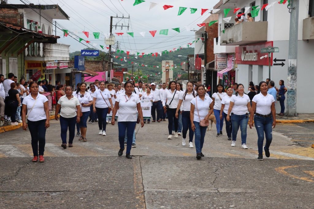 El alcalde Leobardo Gómez González, la presidenta del DIF; Patricia Ortiz de Gómez, e integrantes del cabildo, directores de área, trabajadores sindicalizados y de confianza, así como de los agentes y sub agentes municipales, integraron la marcha que dio inicio en el punto conocido como; “La báscula”, bulevar Bicentenario, continuando su recorrido por las calles; 16 de septiembre y Cuauhtémoc, finalizando en la explanada municipal Benito Juárez.