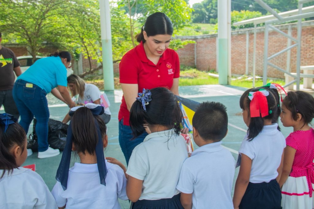 El Sistema Municipal para el Desarrollo Integral de la Familia que preside Diana Patricia Remes Oropeza, a través del área de Asistencia Alimentaria realizó la entrega de paquetes de útiles escolares, gracias a la generosa donación realizada por la cadena de tiendas Waldos, logrando beneficiar con ello a niñas y niños de la escuela primaria Juan Escutia y Adolfo Ruiz Cortines, además del Jardín de Niños Francisco González Bocanegra.
