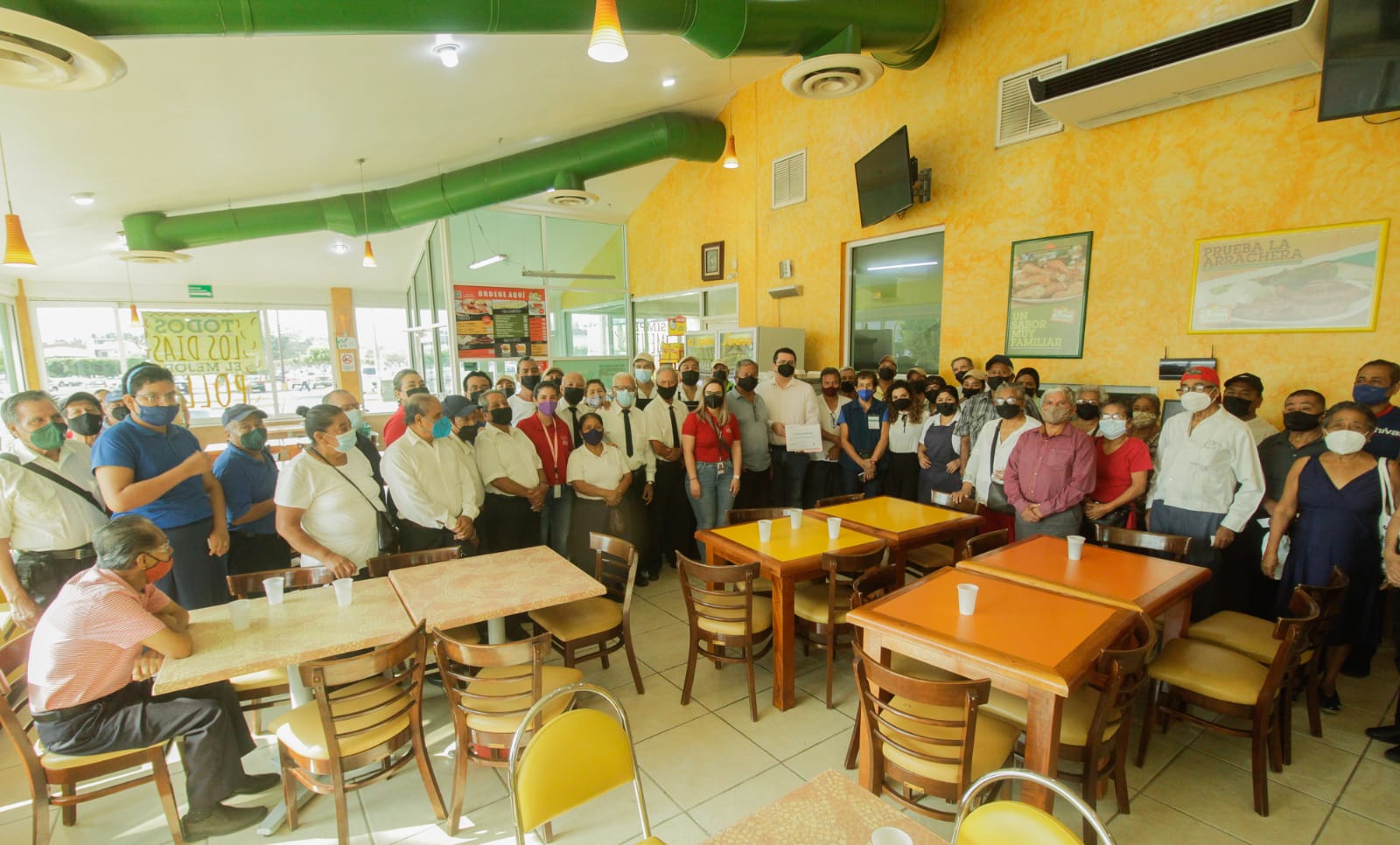 La entrega se llevó a cabo en las instalaciones de la sucursal de Pollo Sinaloa de la Avenida Puebla, donde se dieron cita empacadores de Soriana, Chedraui, Su Bodega sucursal centro, Waldo’s sucursal Palmas, así como ciudadanos que presentan alguna situación de vulnerabilidad, para recibir el apoyo de manos de la Presidenta del DIF y el representante de la empresa Aquiles Castillo.