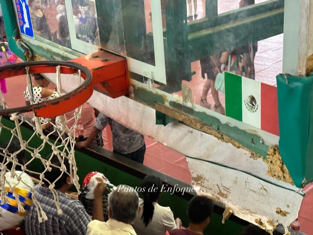 Considerado como una sede oficial de básquetbol, reportan que las canastas que se caen a pedazos, mientras que algunos domos, que se encontraban en el exterior donde practicaban voleibol , fueron utilizados como campamentos para elementos de seguridad pública que arribó al municipio.