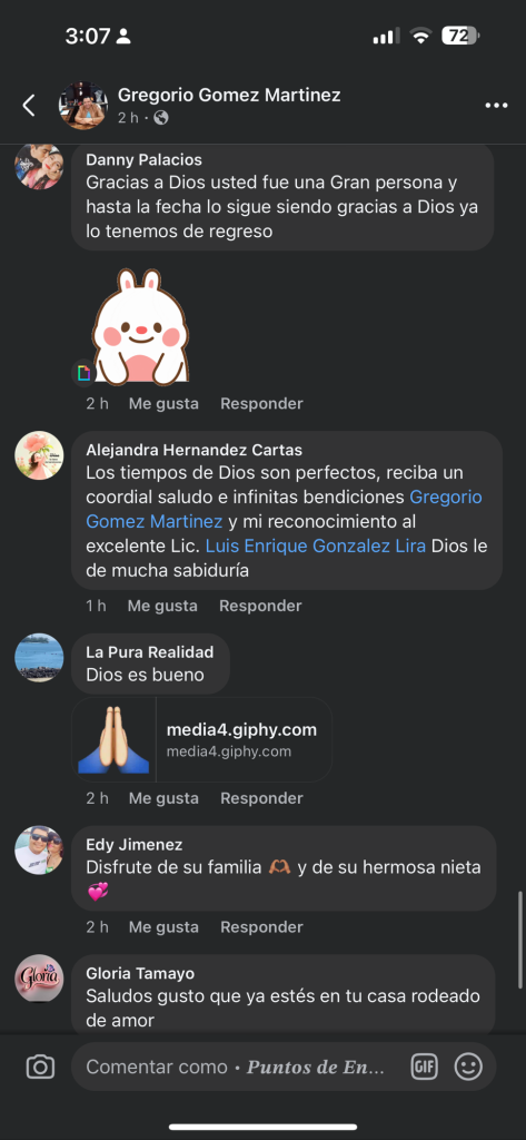 Quiero expresar mi más profundo agradecimiento al bufete de abogados encabezado por el Lic. Luis Enrique González Lira, por su compromiso, profesionalismo y dedicación en mi caso. Sin duda, su trabajo fue fundamental para que hoy pudiera estar aquí.