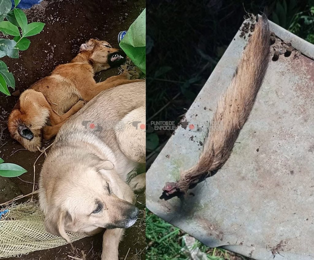 Describen que en el terreno cerca de la iglesia, vivía una familia de perritos callejeros a los que alimentaban con frecuencia. Sin embargo, una de las perritas fue hallada sin vida, grave lesión en la zona anal, pocos metros, encontraron su cola arrancada.