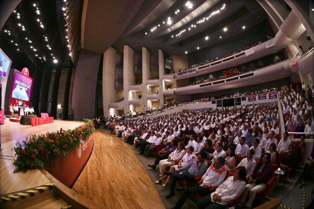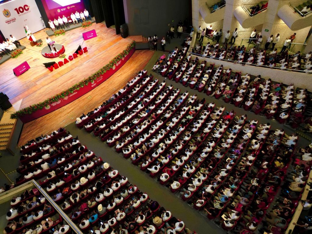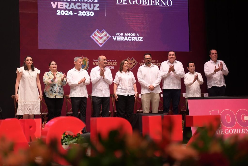 Ante un Centro de Convenciones y Teatro de la Ciudad abarrotado, la titular del Ejecutivo de Veracruz, Rocío Nahle García, presentó su Informe de los 100 Días de Gobierno, acompañada por su Gabinete legal, destacando logros en materia de infraestructura, desarrollo económico, seguridad y bienestar social.