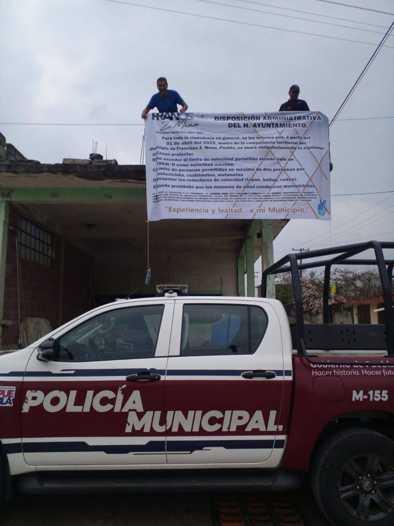 La Dirección de Seguridad Pública de Francisco Z. Mena lanza campaña de concienciación para fomentar la seguridad vial en la región. Como parte de esta iniciativa, se están instalando lonas informativas en diferentes puntos de la ciudad para recordar la importancia del uso obligatorio de casco al conducir.