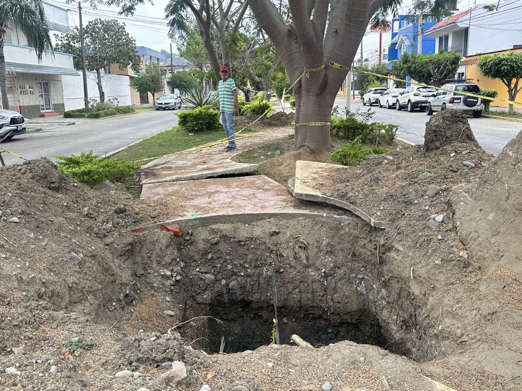Ante las constantes denuncias ciudadanas por la falta de mantenimiento de diversos drenajes en la ciudad. Nuevamente reportan un enorme socavón que dejaron trabajadores del área de drenaje y alcantarillado, así como un socavón de aguas limpias , que invaden toda el área verde de la Avenida 20 en la Colonia Cazones.
