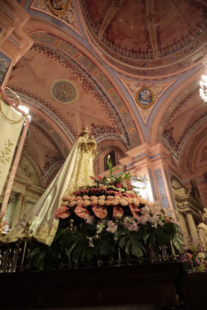 Además, una numerosa cantidad de feligreses se congrega en la iglesia para transportar a la Virgen y creyentes, tanto sociedades religiosas locales y de municipios vecinos portan estandartes alusivos en todo el trayecto hacia el muelle.