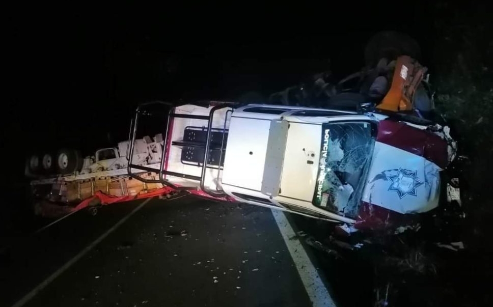 Tres policías lesionados ; tracto camión embiste patrulla
